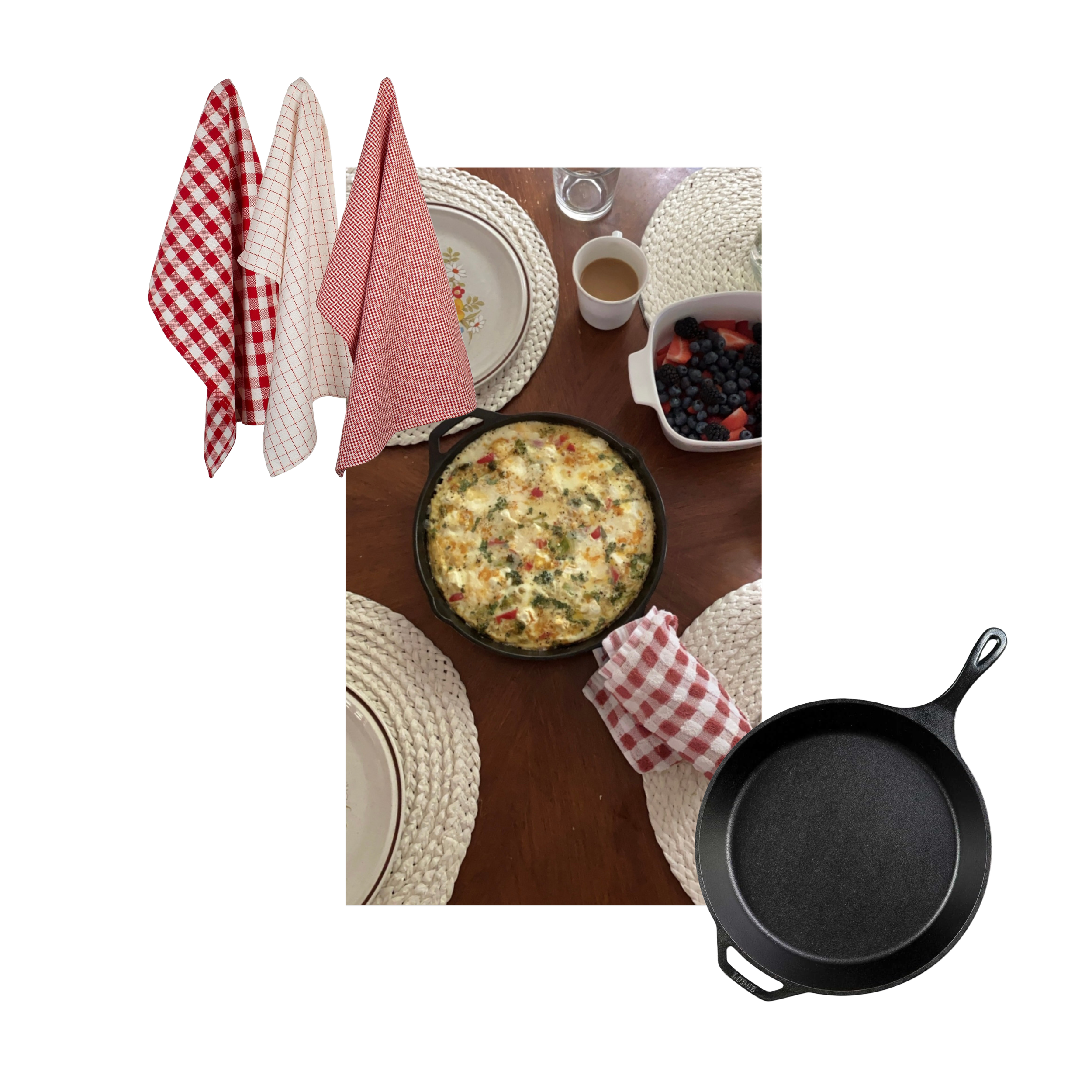 Cozy Frittata Pin Details Click buttons to shop.Commission earned on affiliate links. gingham kitchen towels Lodge Iron Skillet Katie Elizabeth StottsJanuary 29, 2024 0 Likes